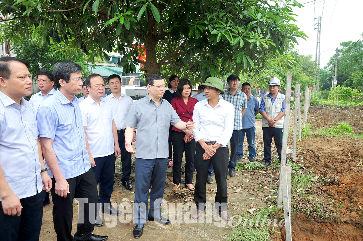 Đồng chí Lê Thị Kim Dung, Phó Bí thư Thường trực Tỉnh ủy, Chủ tịch HĐND tỉnh kiểm tra công trình cầu Cây Quýt, xã Thành Long (Hàm Yên).