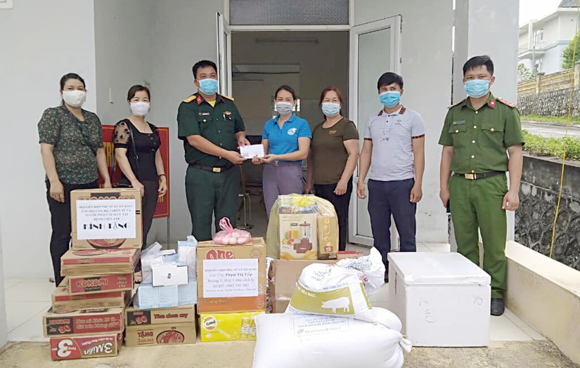 Hội Chữ thập đỏ xã Mỹ Bằng huyện Yên Sơn phối hợp với Hội Phụ nữ xã ủng hộ khu cách ly tại Bệnh viện ATK Yên Sơn. Nguồn ảnh: baotuyenquang.com.vn