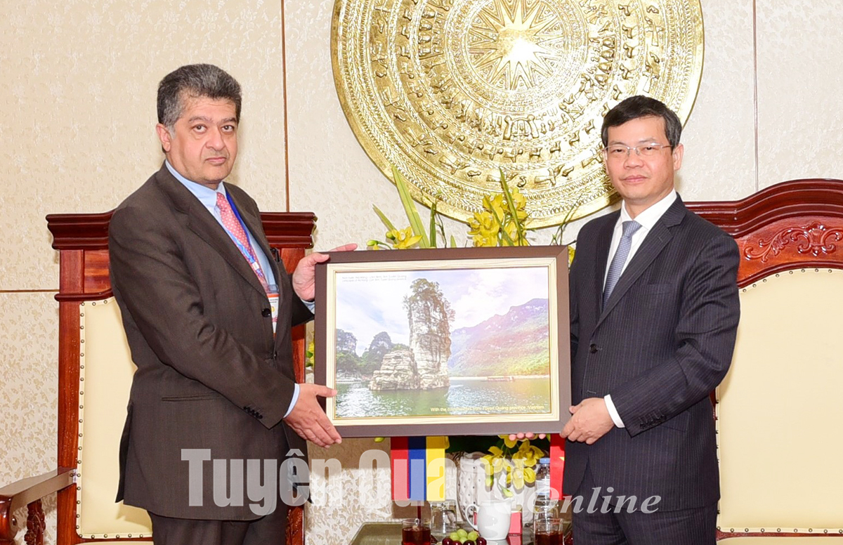 Chiều 4-9, tại trụ sở UBND tỉnh, đồng chí Phó Bí thư Tỉnh ủy, Chủ tịch UBND tỉnh Nguyễn Văn Sơn tiếp Đại sứ đặc mệnh toàn quyền Cộng hòa Armenia tại Việt Nam Vahram Kazhoyan đang có chuyến thăm tỉnh và tham dự Lễ đón nhận Bằng ghi danh “Thực hành Then của người Tày, Nùng, Thái ở Việt Nam” vào danh sách Di sản văn hóa phi vật thể đại diện của nhân loại và Lễ hội Thành Tuyên năm 2022. Dự buổi tiếp có lãnh đạo một số sở, ban, ngành của tỉnh Tuyên Quang.