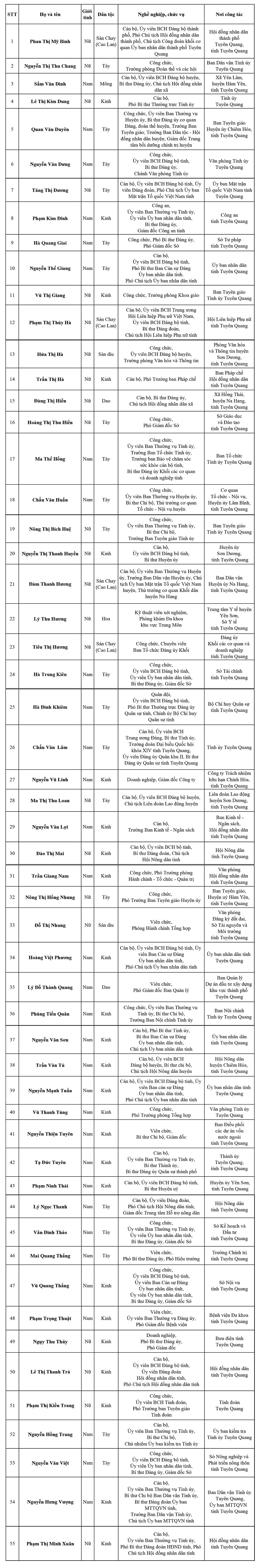 Danh sách những người trúng cử đại biểu Hội đồng nhân dân tỉnh Tuyên Quang khóa XIX, nhiệm kỳ 2021-2026