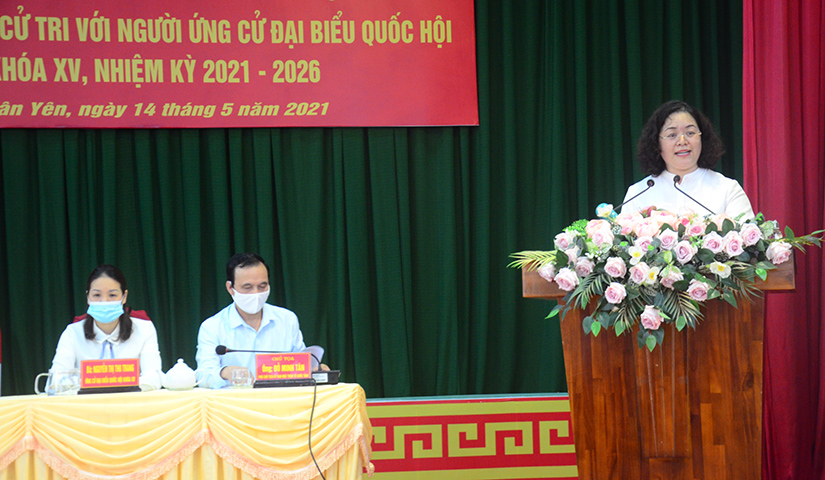 Tiếp tục chương trình tiếp xúc cử tri vận động bầu cử, chiều ngày 14-5, ứng cử viên đã tiếp xúc cử tri tại các cơ quan, đơn vị huyện Hàm Yên và cử tri thị trấn Tân Yên (Hàm Yên).