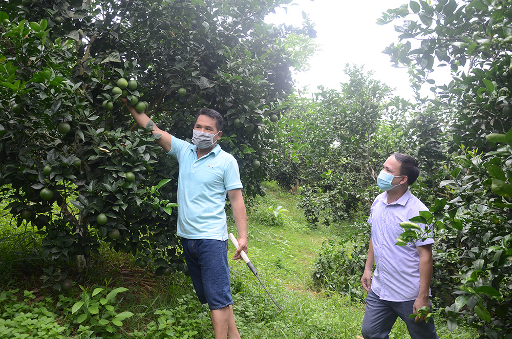 Vườn cam của gia đình anh Nguyễn Văn Hồng, thôn 9, xã Minh Hương đang được tích cực chăm sóc.