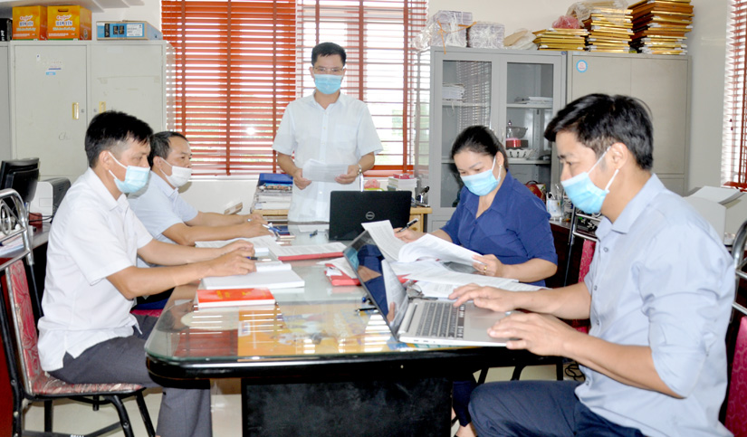 Đoàn kiểm tra của Ban Thường vụ Huyện ủy Hàm Yên kiểm tra tại Chi bộ Phòng Nông nghiệp và Phát triển nông thôn.
