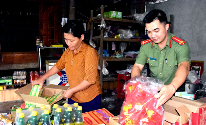 Cán bộ Công an huyện Lâm Bình giúp đỡ hộ gia đình được phân công phụ trách.