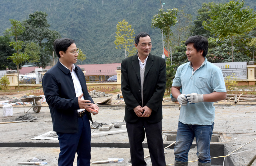 Đồng chí Nguyễn Thành Trung, Bí thư Huyện ủy, Chủ tịch UBND huyện Lâm Bình kiểm tra
