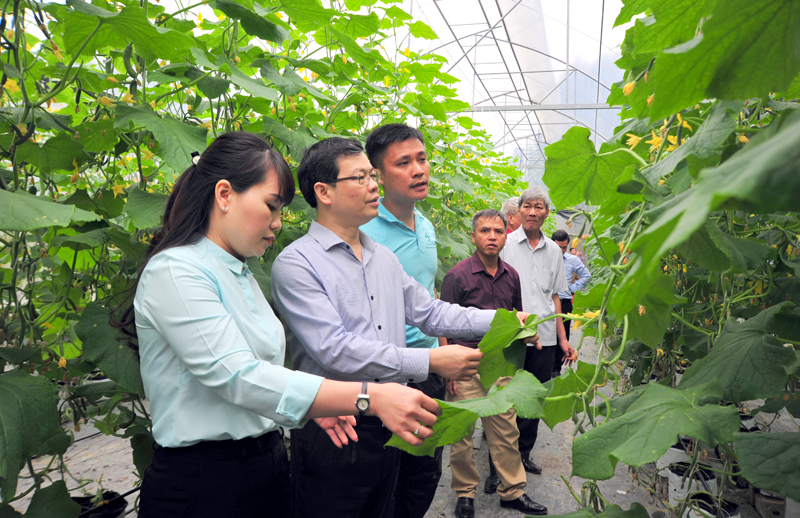 Sơn Dương thăm mô hình trồng dưa công nghệ cao tại xã Kháng Nhật. Ảnh: Thanh Phúc