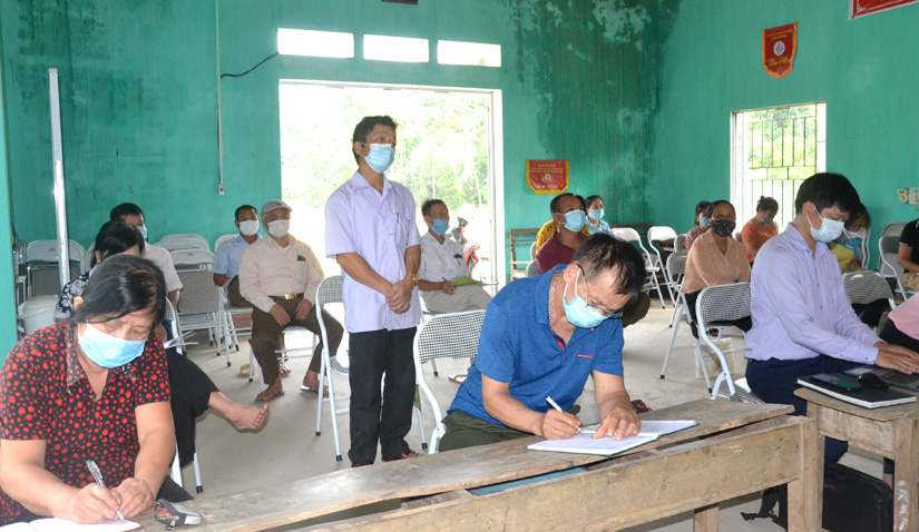 Đảng viên tham gia đóng góp ý kiến trong buổi sinh hoạt chi bộ thường kỳ tháng 6 của thôn Gia Kè, xã Hòa Phú.