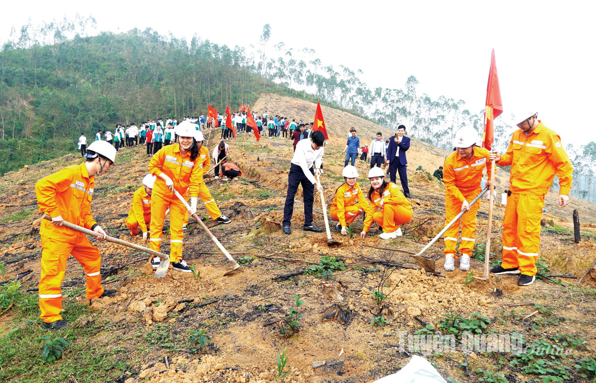 Ngay sau lễ phát động, các đại biểu, lãnh đạo huyện và cán bộ, công chức, viên chức, lực lượng vũ trang và học sinh đã tham gia trồng 2,5 ha keo lai tại tổ dân phố Thắng Quân, thị trấn Yên Sơn.