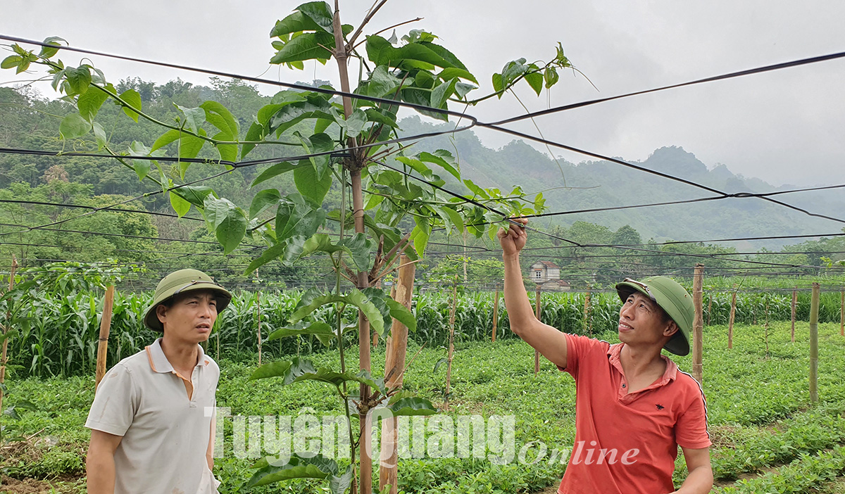 Người dân xã Kim Bình đưa vào trồng cây chanh leo trên diện tích trước đây được trồng chuối.
