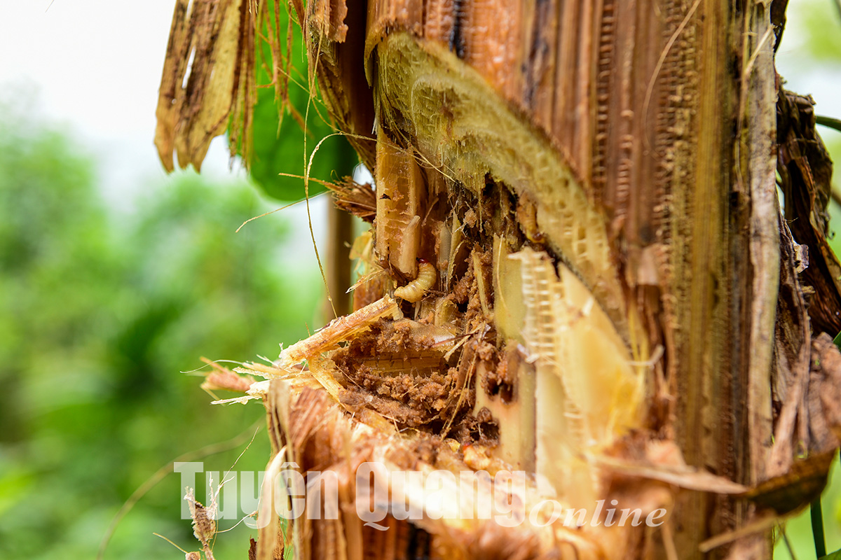Không chỉ gia đình ông Mình mà tất cả các vườn chuối của bà con trong thôn, trong xã đều xuất hiện hiện tượng vàng lá, thối gốc. Theo ông Mình, cây chuối đang phát triển tốt tự nhiên lá chuyển sang màu vàng và gốc có nhiều sâu đục rồi chết hàng loạt, thậm chí gia đình ông còn phát dọn, đốt thực bì xong trồng lứa chuối mới cũng xảy ra căn bệnh tương tự. Nhìn những vườn chuối chết hàng loạt, đất để không khiến ông thấy xót xa. Với diện tích chuối bị chết, gia đình ông đã cải tạo đất, trồng luân canh cây gỗ mỡ, đến nay, diện tích mỡ của gia đình đang phát triển tốt, hứa hẹn cho thu nhập trong những năm tới.