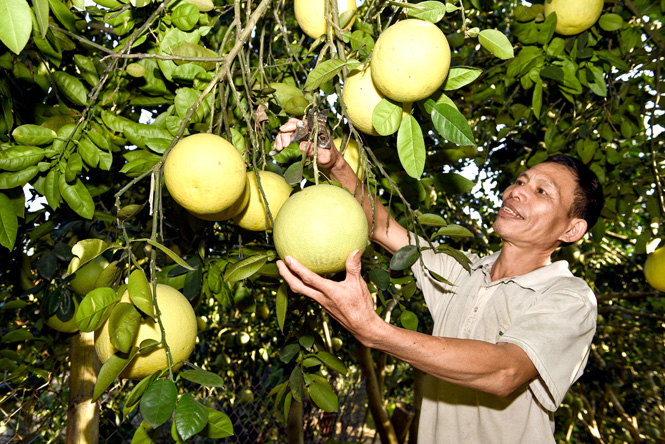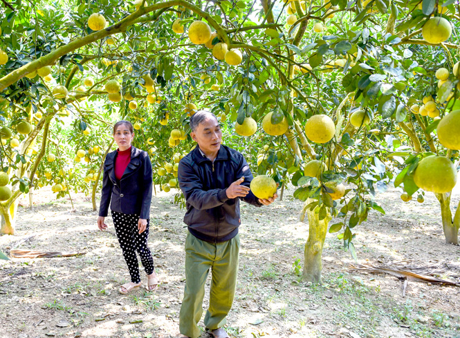 Người dân xã Phúc Ninh (Yên Sơn) trồng bưởi cho thu nhập cao. Ảnh: Quốc Việt