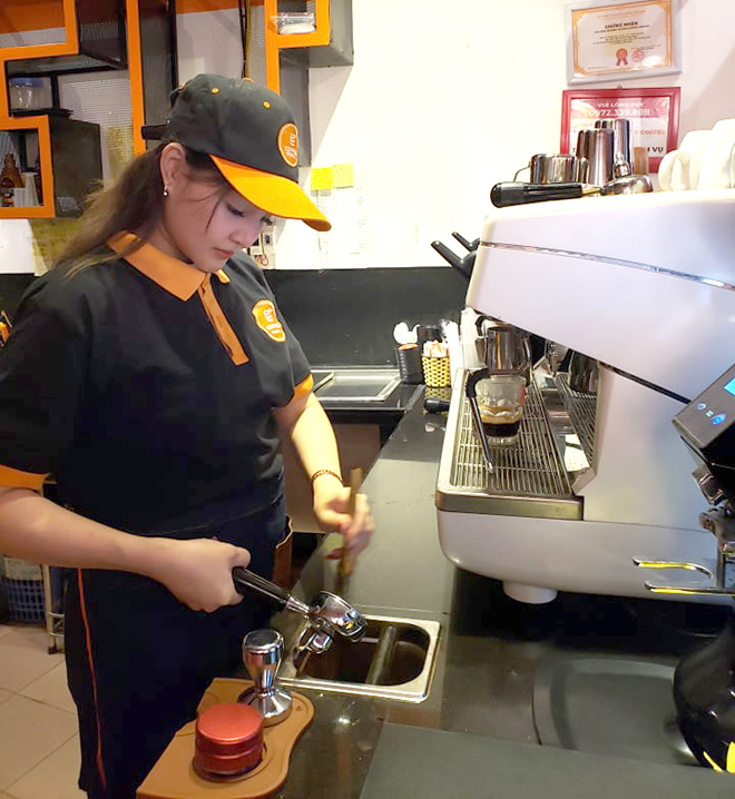 Trần Thị Như Ngọc pha chế cà phê cho khách hàng.