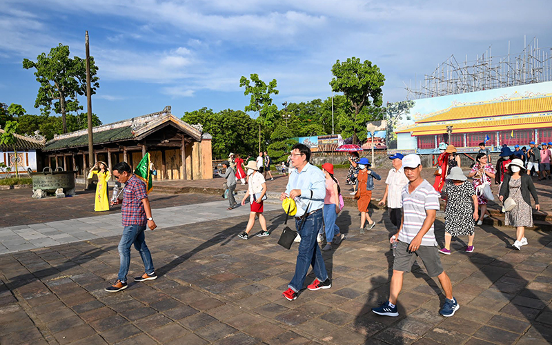 Khách du lịch tham quan Đại Nội trong dịp Festival Huế 2022. (Ảnh MINH HÀ)