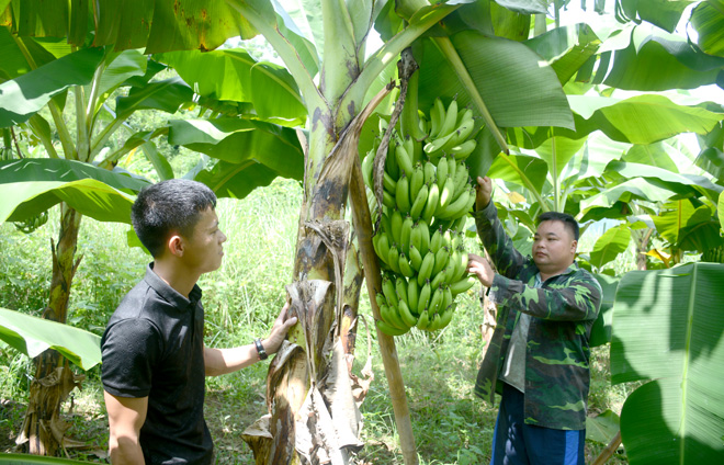 Thôn Kim Quang hiện có 15 ha chuối. Cũng từ trồng chuối mà người dân có thu nhập ổn định. Hiện thôn chỉ còn 9 hộ nghèo, chiếm khoảng 4% tổng số hộ. Từ trồng chuối người dân đã tận dụng cây, lá chuối sau thu hoạch làm thức ăn chăn nuôi. Anh Đinh Văn Chương, Trưởng thôn Kim Quang nói: “Gia đình tôi tận dụng cây, lá chuối để chăn nuôi 20 con bò nhốt chuồng. Hàng năm, từ trồng 1 ha chuối, chăn nuôi bò gia đình thu lãi hơn 200 triệu đồng”.