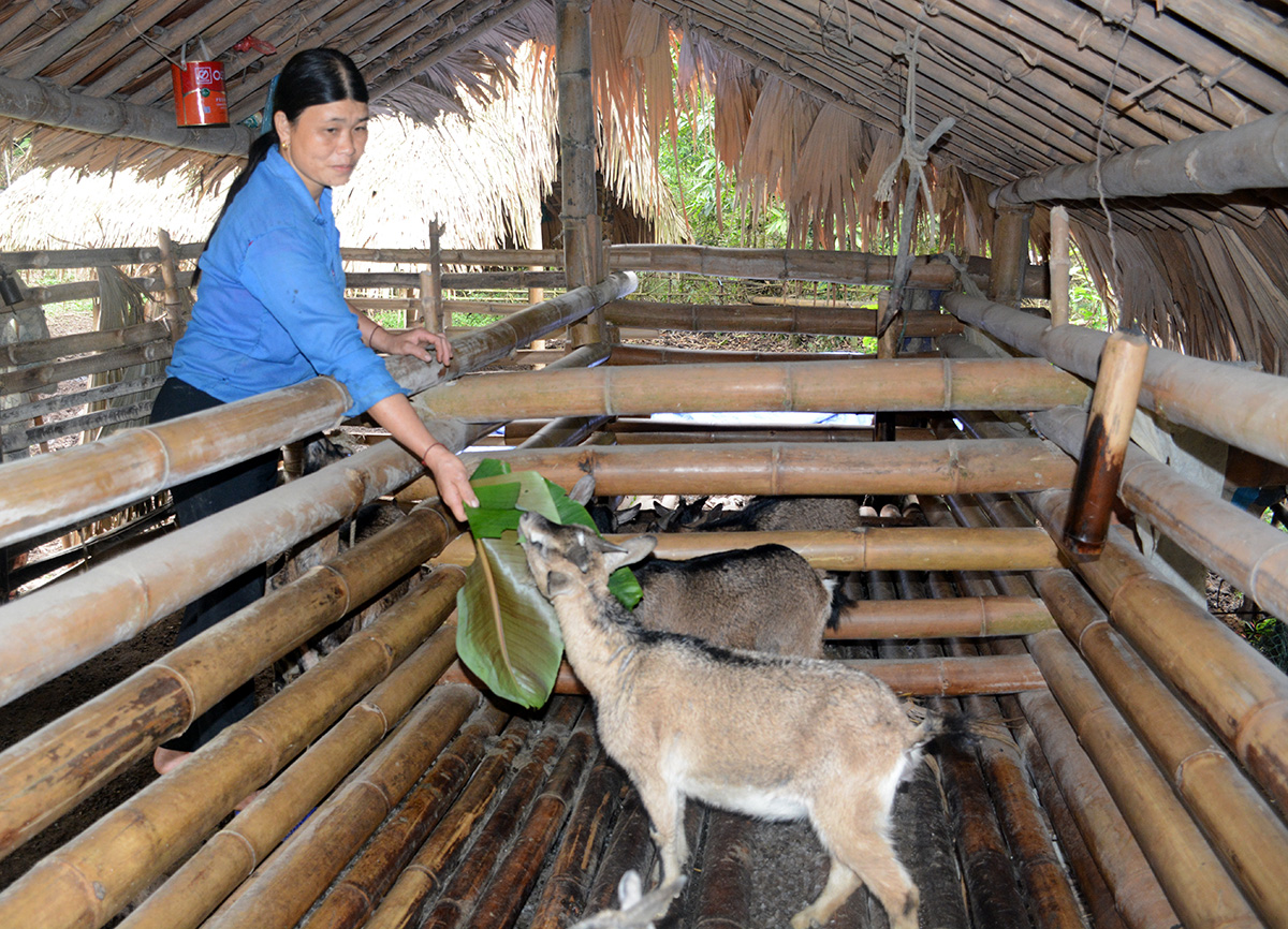 Năm 2018, gia đình chị Nguyễn Thị Thắm, thôn Nặm Đíp, xã Lăng Can được hỗ trợ vốn từ Chương trình 30a mua 3 con dê giống. Sau 2 năm, đàn dê của gia đình chị tăng lên 7 con, đến nay mỗi năm gia đình chị được bán từ 2-3 con dê thịt. Có vốn, chị đầu tư chăn nuôi thêm 3 con bò và 3 con trâu sinh sản, kinh tế gia đình dần ổn định, cuối năm 2020 gia đình chị được công nhận thoát nghèo.