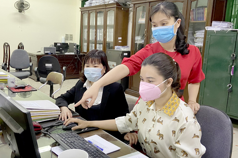 Cán bộ Chi cục Thuế khu vực Thành phố - Yên Sơn hỗ trợ người nộp thuế qua hình thức điện tử.