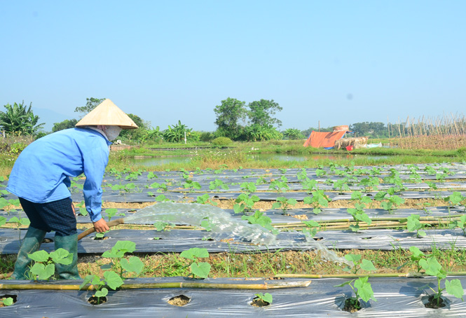 Người dân xã Hoàng Khai (Yên Sơn) chăm sóc dưa vụ đông.