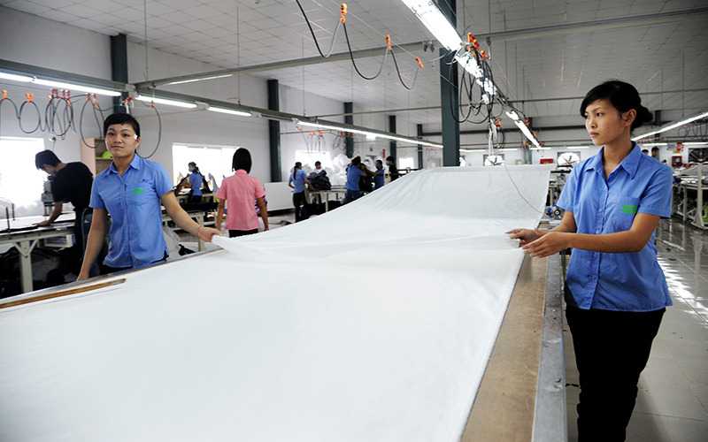 Công nhân Công ty TNHH MSA-YB (tỉnh Tuyên Quang) pha chế vải. Ảnh: Anh An