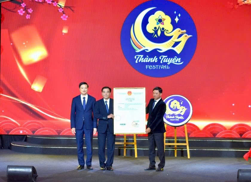 Lãnh đạo Cục Sở hữu trí tuệ - Bộ Khoa học và Công nghệ trao Giấy chứng nhận nhãn hiệu Lễ hội Thành Tuyên cho đại diện tỉnh Tuyên Quang. Nguồn: Internet.