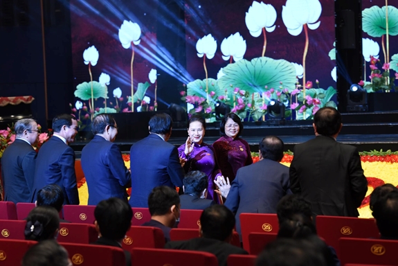 Chủ tịch Quốc hội Nguyễn Thị Kim Ngân và lãnh đạo Đảng, Nhà nước chụp ảnh cùng các đại biểu.
