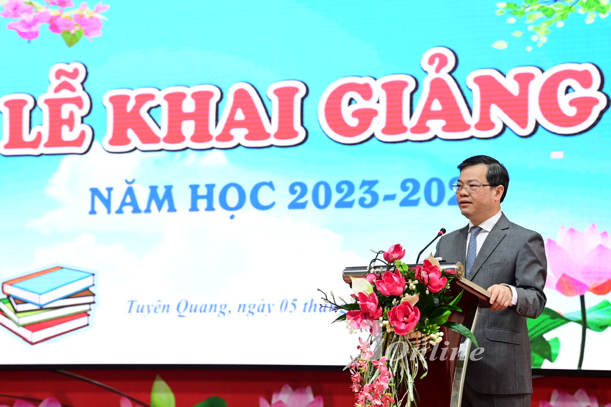 Phát biểu tại Lễ khai giảng, thay mặt lãnh đạo tỉnh, đồng chí Chủ tịch UBND tỉnh biểu dương và chúc mừng những thành tích của thầy và trò nhà trường đã đạt được trong năm học vừa qua.