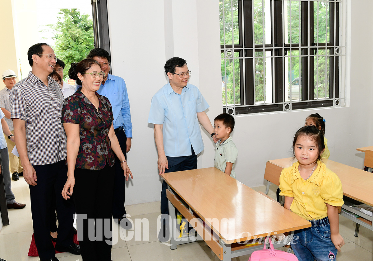 Đồng chí Chủ tịch UBND tỉnh Nguyễn Văn Sơn và đoàn công tác kiểm tra công tác chuẩn bị năm học mới 2023 - 2024 tại Trường Tiểu học và THCS Lê Văn Hiến, xã Tú Thịnh (Sơn Dương).
