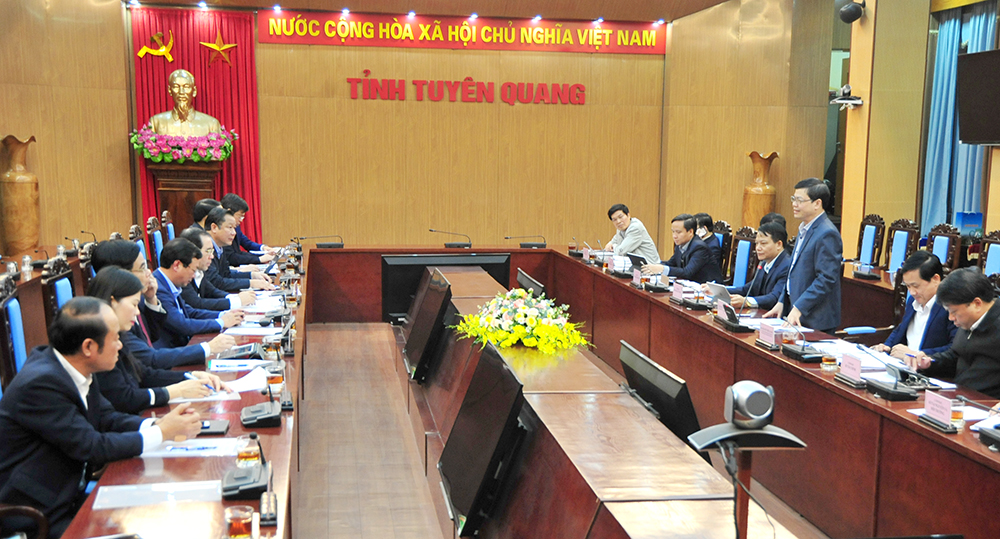 Thay mặt tỉnh Tuyên Quang, đồng chí Chủ tịch UBND tỉnh Nguyễn Văn Sơn đã chia sẻ những khó khăn với tỉnh Phú Thọ về công tác di dân tái định cư, đặc biệt là việc di chuyển nghĩa trang trên khu vực thực hiện dự án. Đồng chí đề nghị và mong muốn tỉnh Phú Thọ quan tâm đôn đốc đẩy nhanh tiến độ để sớm động thổ dự án trước Đại hội đại biểu toàn quốc lần thứ XIII của Đảng. Để đạt được mục tiêu đó, đồng chí đề nghị tăng cường sự phối hợp giữa hai tỉnh để giải quyết công việc theo từng đợt, triển khai nhanh những phần việc nào có thể làm trước Tết Nguyên đán. Riêng các phần việc liên quan đến công tác tái định cư thực hiện sau Tết Nguyên đán, không ảnh hưởng đến việc đón Tết của người dân.