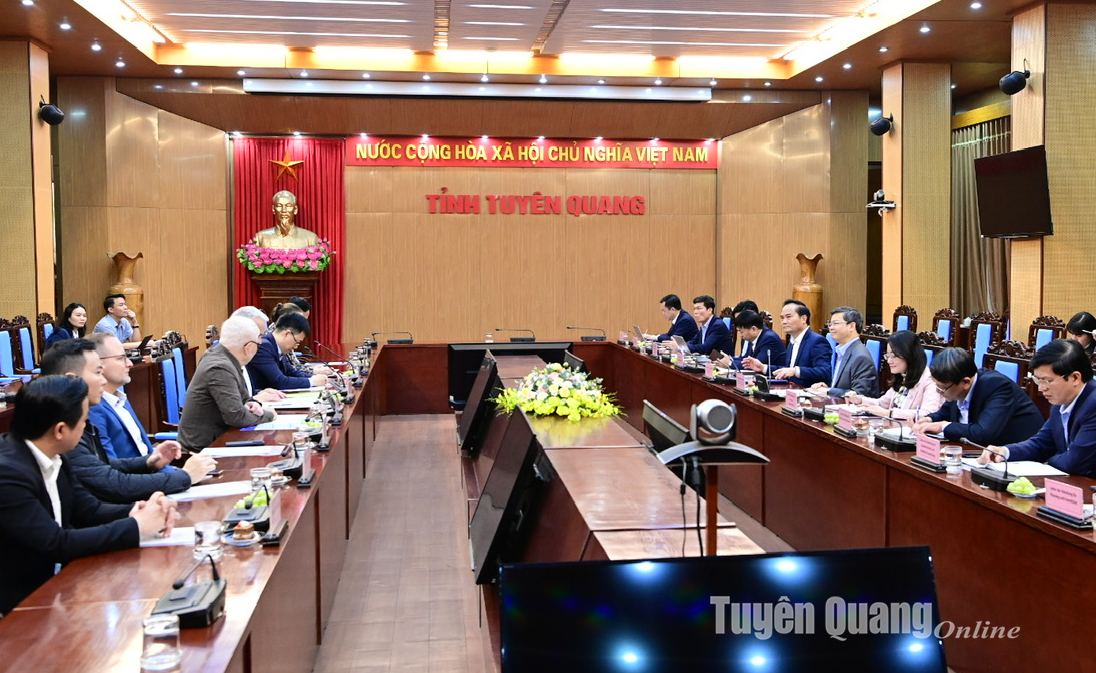 Phát biểu chào mừng đoàn công tác, đồng chí Chủ tịch UBND tỉnh Nguyễn Văn Sơn chúc đoàn có kết quả tốt đẹp trong chuyến thăm và làm việc tại Tuyên Quang. Đồng chí giới thiệu với đoàn các tiềm năng về văn hóa, du lịch, điều kiện tự nhiên; thông tin tình hình phát triển kinh tế - xã hội của tỉnh.