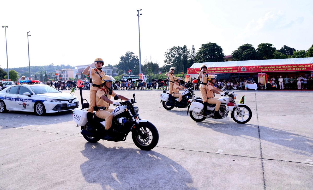 Lưc lượng Cảnh sát giao thông trình diễn ô tô và mô tô dẫn đoàn.