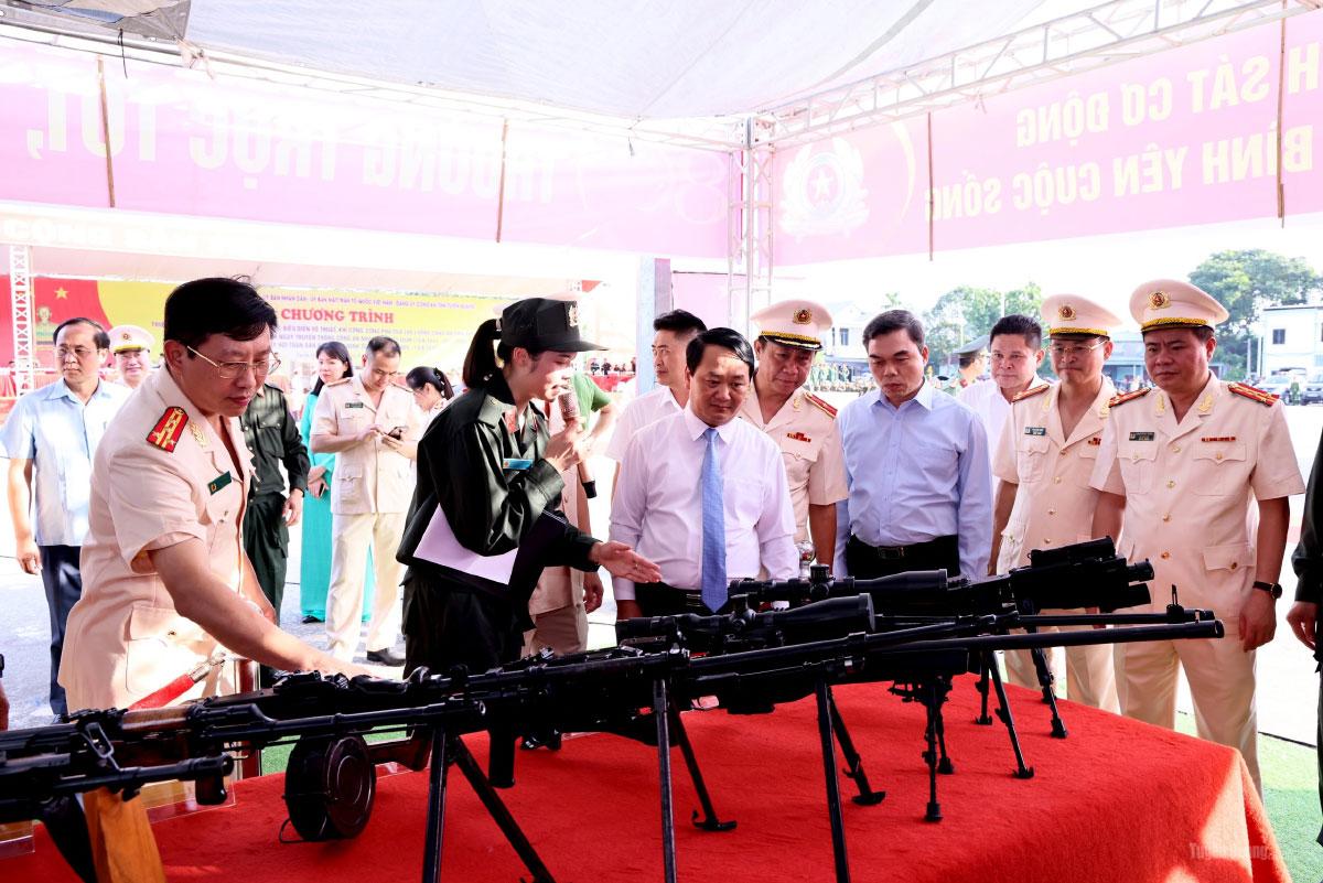 Các đồng chí lãnh đạo tỉnh tham quan trưng bày triển lãm vũ khí, phương tiện, trang thiết bị của các đơn vị nghiệp vụ Công an Tuyên Quang.