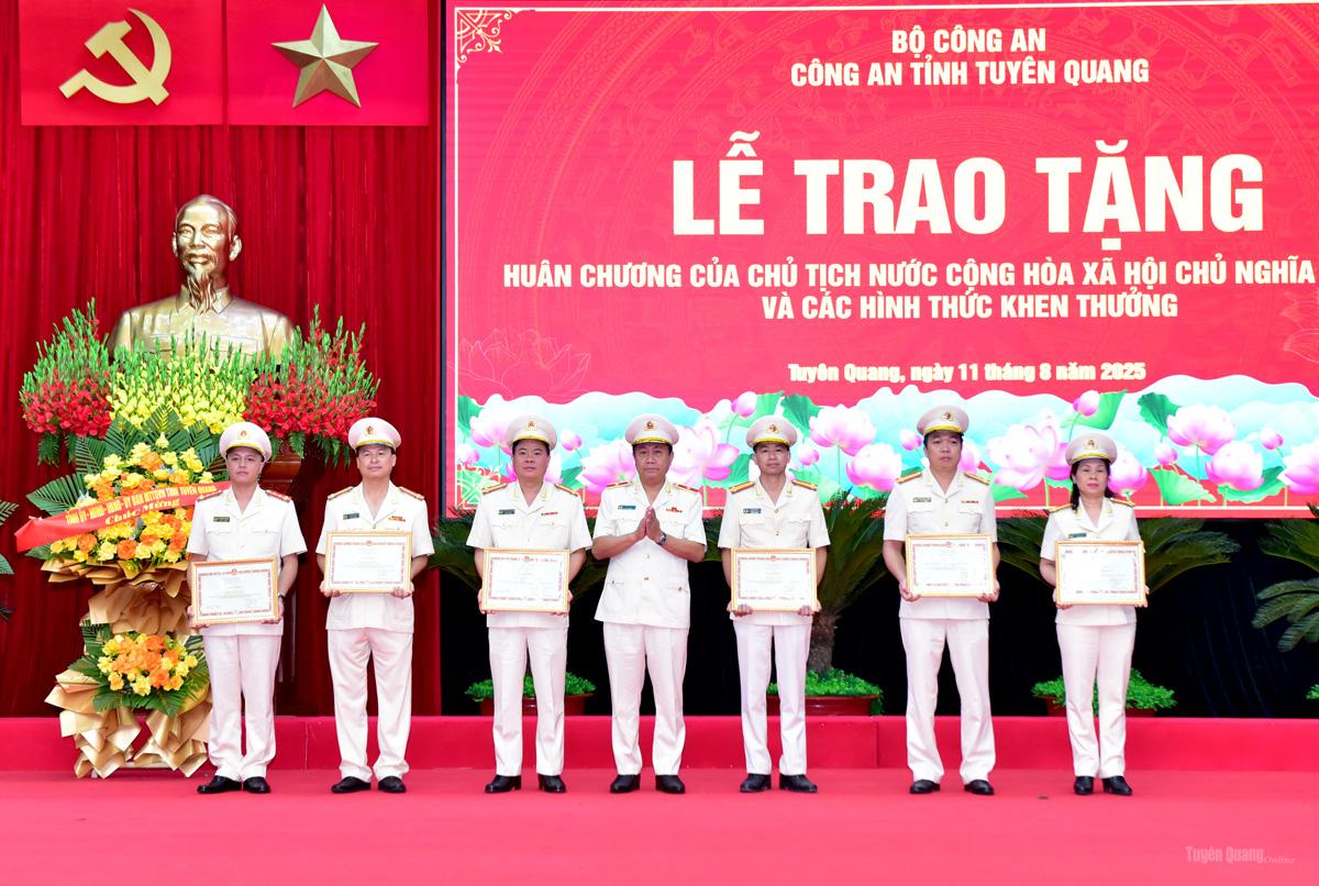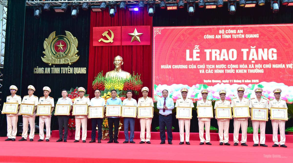 Ghi nhận những thành tích xuất sắc của các tập thể, cá nhân lực lượng Công an tỉnh Tuyên Quang nhân dịp này, Chủ tịch nước tặng Huân chương bảo vệ Tổ quốc hạng Ba cho 6 cá nhân; Thủ tướng Chính phủ tặng Bằng khen cho 8 cá nhân; Bộ trưởng Bộ Công an tặng Bằng khen cho 3 tập thể và 3 cá nhân.