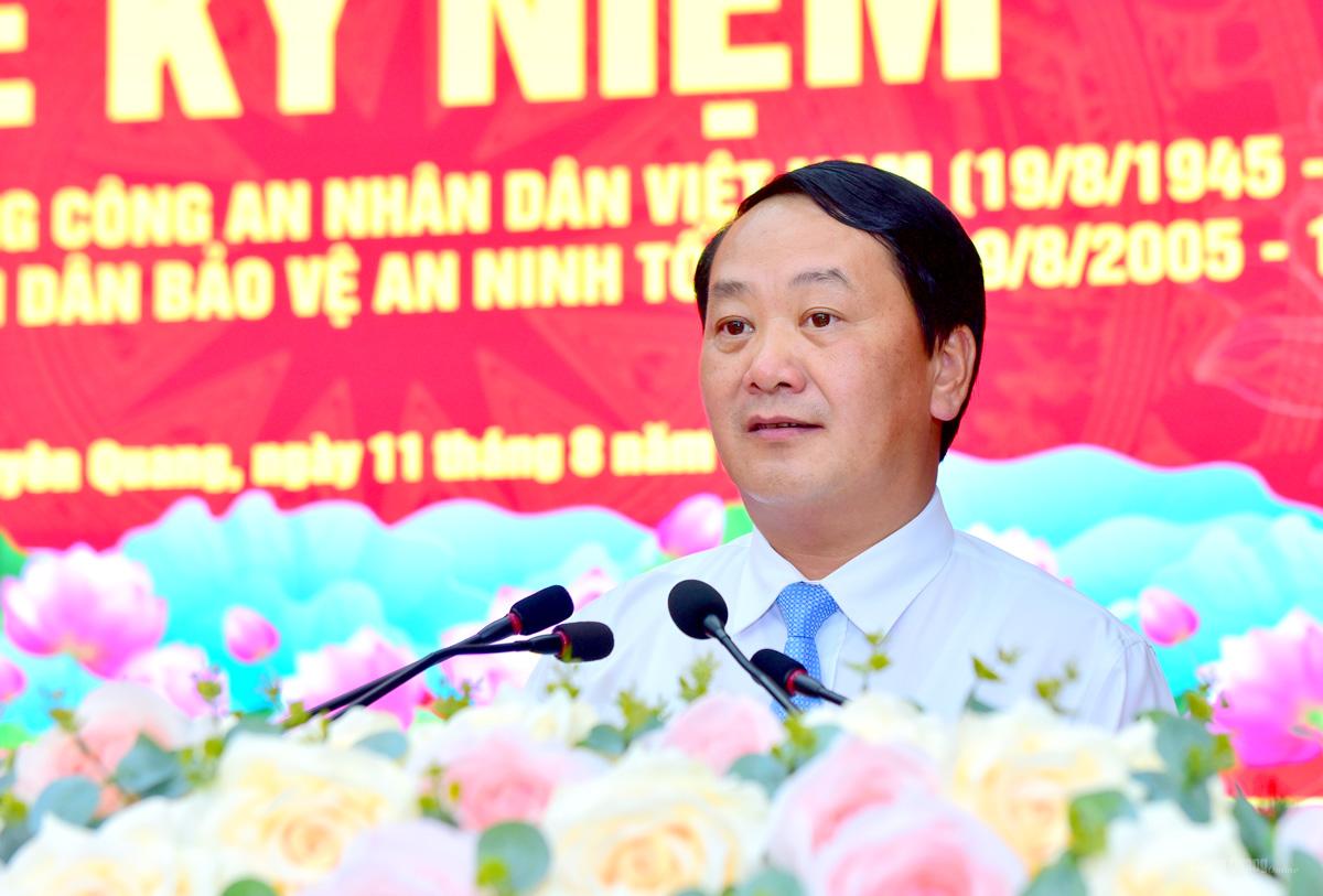 Đọc diễn văn tại lễ kỷ niệm, Thiếu tướng Nguyễn Đức Thuận, Giám đốc Công an tỉnh khẳng định, dưới sự lãnh đạo của Đảng và Nha Công an Trung ương, lực lượng Công an Tuyên Quang và Hà Giang đã không ngừng trưởng thành, phát triển qua các cuộc kháng chiến chống thực dân Pháp và chống Mỹ cứu nước. Trong kháng chiến chống Pháp, Tuyên Quang được chọn là “Thủ đô Kháng chiến”, ghi dấu nhiều chiến công thầm lặng trong bảo vệ an toàn các cơ quan Trung ương, Bác Hồ và lãnh đạo cấp cao. Dù gian khổ, hiểm nguy, cán bộ, chiến sĩ Công an kiên trung, đoàn kết, sẵn sàng hy sinh vì độc lập dân tộc, bảo vệ tuyệt đối an toàn cho Chủ tịch Hồ Chí Minh, Trung ương Đảng tại Khu căn cứ Tân Trào, các hội nghị quan trọng ở địa phương, đặc biệt là Đại hội đại biểu toàn quốc lần thứ II của Đảng (1951) tại xã Kim Bình, huyện Chiêm Hoá (cũ)…