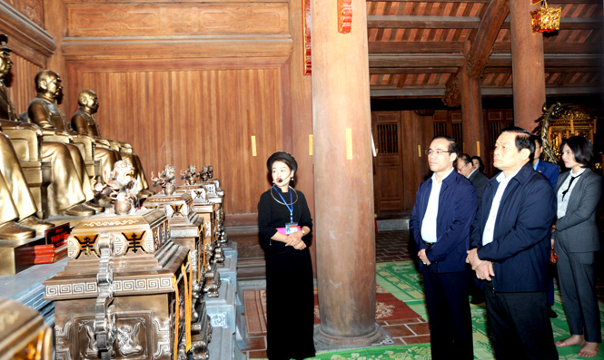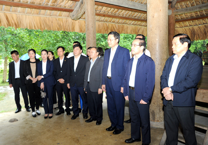 Các đồng chí lãnh đạo Hội đồng Dân tộc Quốc hội và lãnh đạo tỉnh thăm đình Tân Trào.