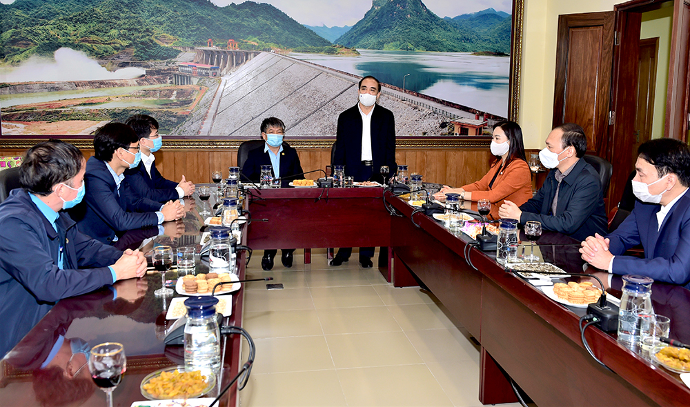 Đồng chí Bí thư Tỉnh ủy Chẩu Văn Lâm phát biểu chúc mừng năm mới Công ty Thủy điện Tuyên Quang. Nguồn ảnh: Báo Tuyên Quang Online