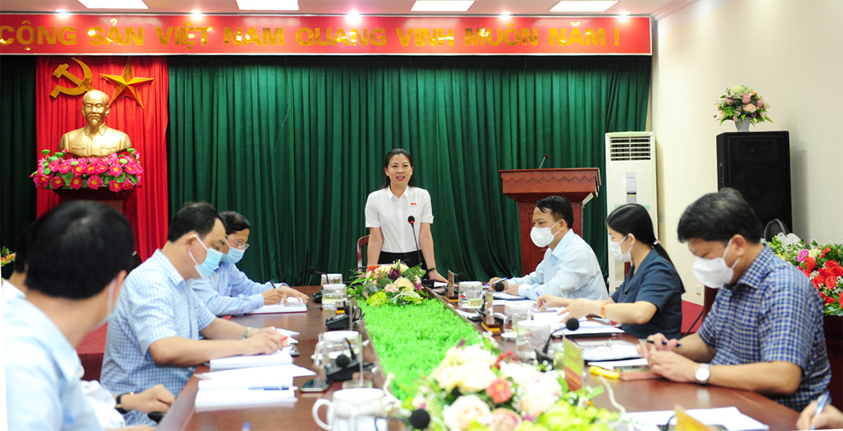 Đồng chí Lê Thị Kim Dung, Phó Bí thư Thường trực Tỉnh ủy, Chủ tịch HĐND tỉnh phát biểu tại buổi làm việc.
