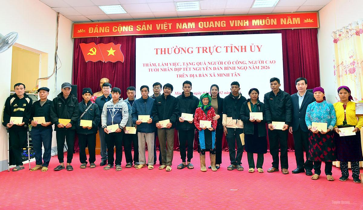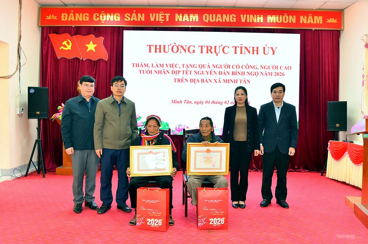 Nhân dịp chuẩn bị đón Tết Bính Ngọ 2026, sáng 4-2, đồng chí Lê Thị Kim Dung, Phó Bí thư Thường trực Tỉnh ủy cùng đoàn công tác đã tới thăm, động viên, trao quà Tết tại xã biên giới Minh Tân.