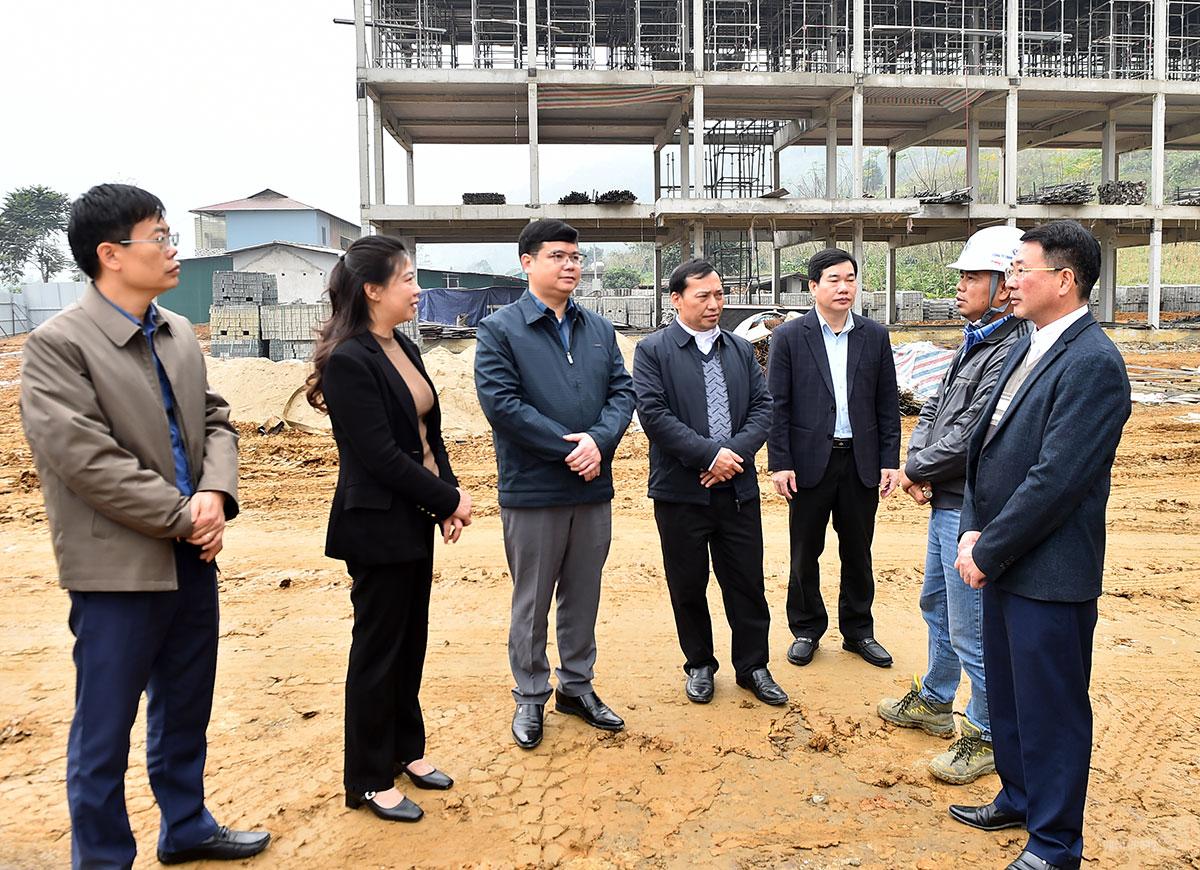 Đồng chí Phó Bí thư Thường trực Tỉnh ủy Lê Thị Kim Dung kiểm tra công trình xây dựng trường Phổ thông Nội trú liên cấp Tiểu học và Trung học cơ sở Minh Tân. |