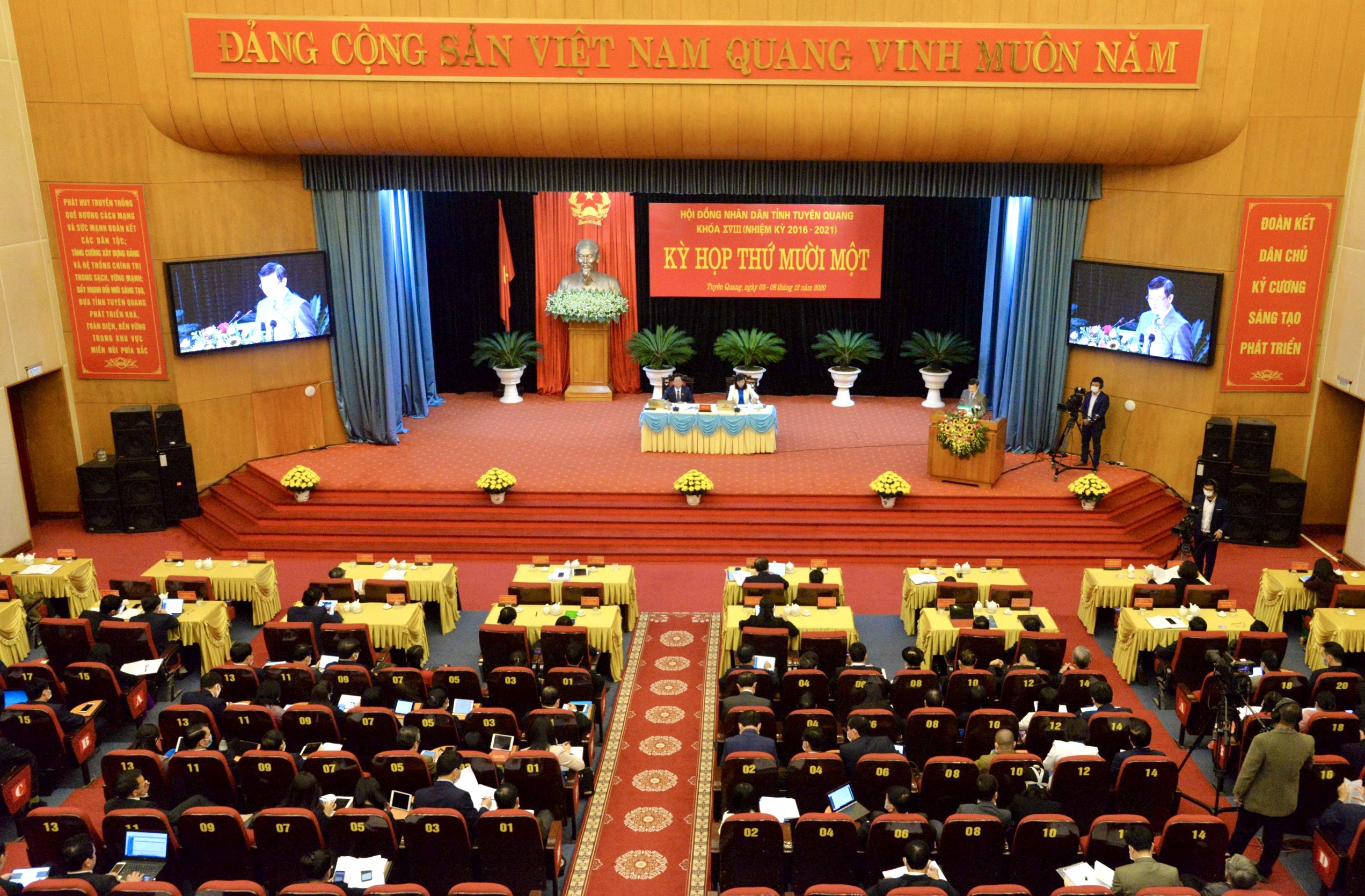 Đồng chí Chủ tịch UBND tỉnh Nguyễn Văn Sơn đã trình bày các báo cáo của UBND: Kết quả công tác năm 2020; phương hướng, nhiệm vụ công tác năm 2021; Kết quả thực hiện nhiệm vụ phát triển kinh tế - xã hội, bảo đảm quốc phòng an ninh năm 2020; phương hướng, nhiệm vụ và giải pháp phát triển kinh tế - xã hội, quốc phòng - an ninh năm 2021; Báo cáo kết quả thực hiện nhiệm vụ phát triển kinh tế - xã hội 5 năm 2016 - 2020; dự kiến kế hoạch phát triển kinh tế - xã hội 5 năm 2021 - 2025.