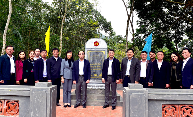 Lãnh đạo Văn phòng Trung ương Đảng và lãnh đạo tỉnh tại di tích Khun Miềng, xã Kiên Đài.