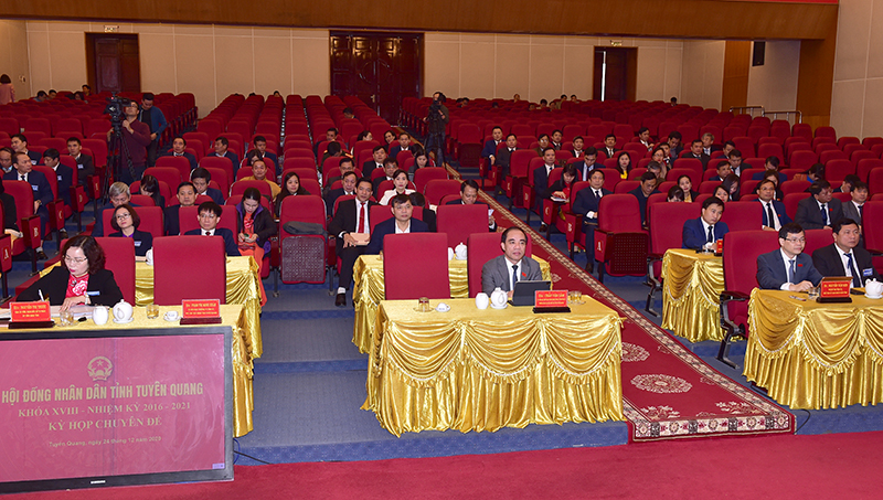 Sáng ngày 24/12, tại Trung tâm Hội nghị tỉnh, HĐND tỉnh khóa XVIII, nhiệm kỳ 2016 - 2021 đã tổ chức kỳ họp chuyên đề thông qua một số Dự thảo Nghị quyết quan trọng. Các đồng chí: Phạm Thị Minh Xuân, Ủy viên Ban Thường vụ Tỉnh ủy, Phó Chủ tịch HĐND tỉnh; Triệu Kim Long, Phó Chủ tịch HĐND tỉnh chủ tọa kỳ họp.