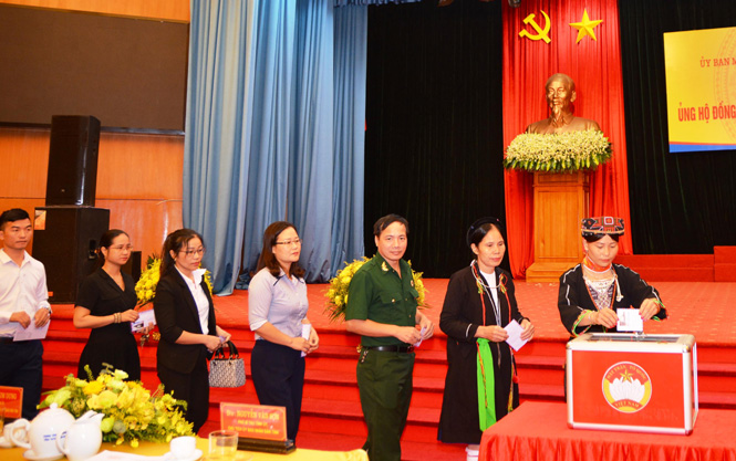 Các đại biểu ủng hộ đồng bào miền Trung. Ảnh: Ma Hưng