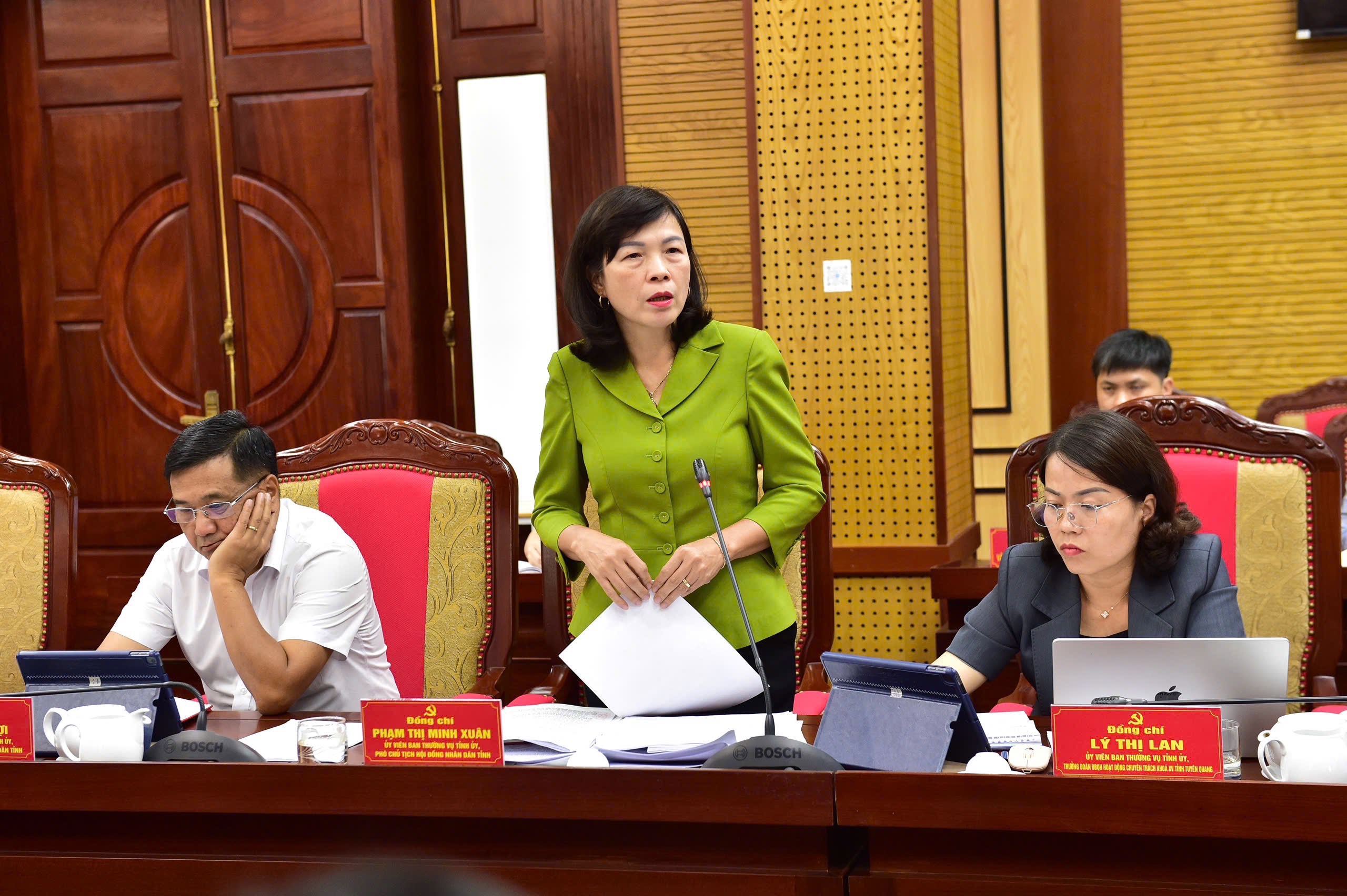 | Đồng chí Phó Chủ tịch HĐND tỉnh Phạm Thị Minh Xuân phát biểu thảo luận. |