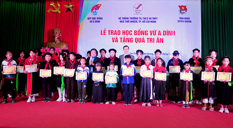 Ngày 12-12, Quỹ học bổng Vừ A Dính, hệ thống trường tiểu học, THCS và THPT Ngô Thời Nhiệm (TP Hồ Chí Minh) đã tổ chức Lễ trao học bổng Vừ A Dính và tặng quà tri ân tại huyện Sơn Dương.