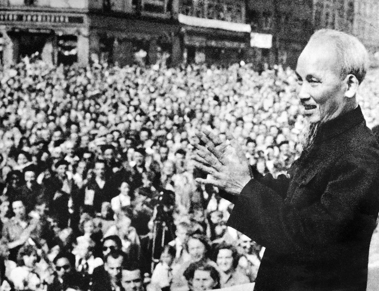 Chủ tịch Hồ Chí Minh đến thăm và nói chuyện với hơn 30.000 công nhân Khu Công nghiệp Vysocina nhân dịp Người sang thăm hữu nghị chính thức nước Cộng hòa xã hội chủ nghĩa Tiệp Khắc (nay là Cộng hòa Séc), ngày 17 tháng 7 năm 1957.