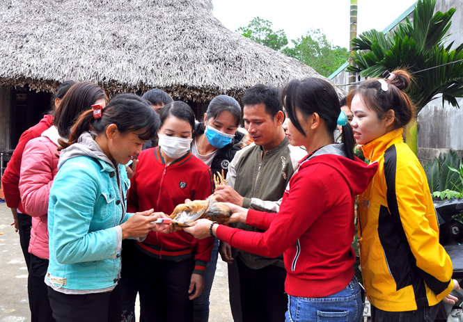 Chị Mễ Thị Quý phấn khởi cho biết, tối hôm trước, hai vợ chồng chị đã bắt nhốt đàn gà 100 con để cả lớp thực hành. Cũng như các hộ dân khác trong thôn, gia đình chị tận dụng đất vườn rộng, nhà gần suối để nuôi nuôi gà, vịt. Trước đây, do thiếu kiến thức, chưa biết cách phòng bệnh nên vẫn xảy ra hiện tượng gà, vịt chết gây thiệt hại lớn. Qua khóa học này, chị và các học viên khác tự tin “bắt bệnh” các bệnh thường gặp trên đàn gia cầm. Chị biết cách tiêm phòng định kỳ, điều trị một số bệnh cho đàn gia cầm; sử dụng một số chế phẩm sinh học làm đệm lót sinh học xử lý mùi hôi thối trong chăn nuôi. Từ việc nắm vững kiến thức học được, chị dự định năm tới sẽ đầu tư tăng quy mô gà, vịt lên để đáp ứng nhu cầu thị trường thực phẩm sạch, tăng thêm thu nhập cho gia đình.