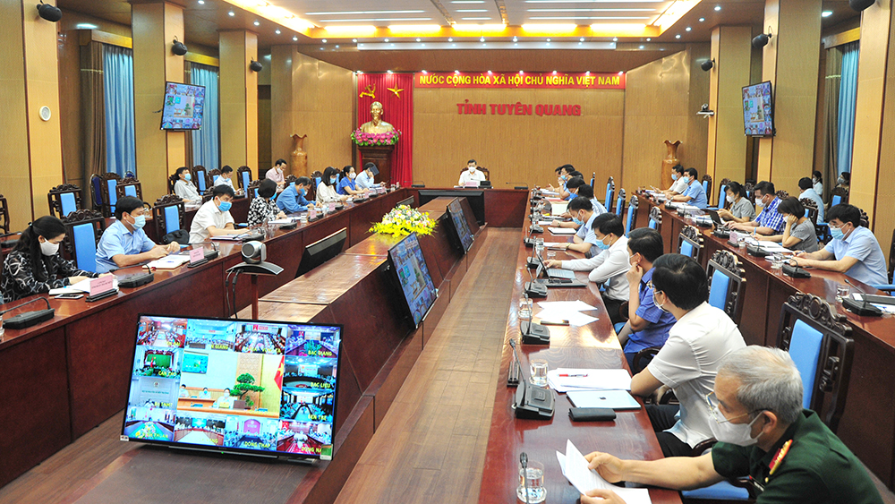 Đại biểu dự hội nghị trực tuyến toàn quốc về công tác phòng chống dịch Covid-19 tại điểm cầu Tuyên Quang. Nguồn ảnh: baotuyenquang.com.vn