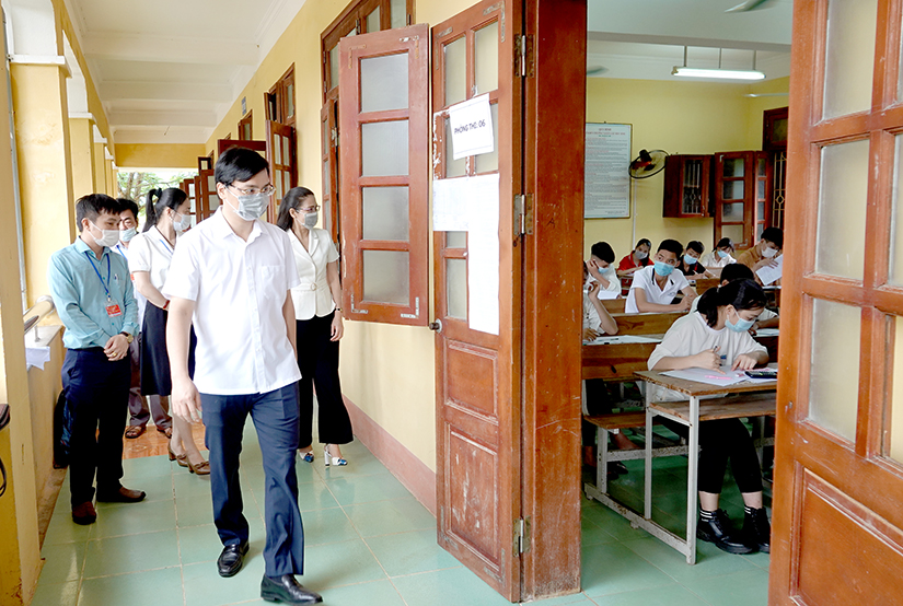 Cũng trong sáng nay, các đồng chí lãnh đạo Sở Giáo dục và Đào tạo đã đi kiểm tra công tác tổ chức thi và phòng, chống dịch Covid-19 tại các điểm thi trên địa bàn tỉnh. Đồng thời, yêu cầu các hội đồng thi tiếp tục phát huy tinh thần cảnh giác trong công tác phòng chống dịch Covid-19. Việc tổ chức thi phải thực hiện theo tinh thần nghiêm túc, đúng quy chế và đảm bảo an toàn.
