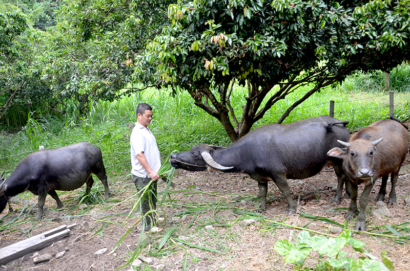 Mô hình chăn nuôi trâu sinh sản của gia đình ông Hứa Văn Dương, thôn Làng Đài 1,