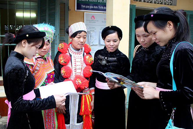 Phụ nữ xã Lăng Can (Lâm Bình) được tiếp cận các thông tin về kế hoạch hóa gia đình.