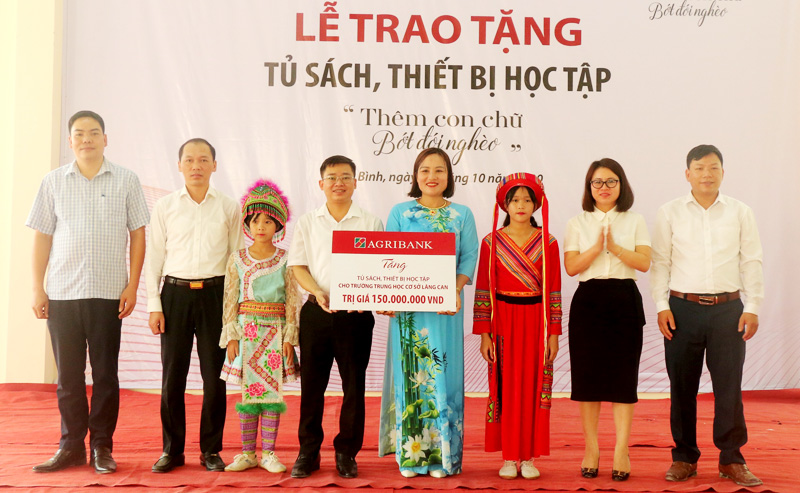 Đầu tháng 10 này, Agribank Tuyên Quang phối hợp với Phòng Giáo dục và Đào tạo huyện Lâm Bình tổ chức trao tặng 20 bộ máy vi tính và thiết bị dạy và học trị giá 150 triệu đồng cho giáo viên và học sinh trường THCS Lăng Can. Cô giáo Phùng Thị Hiền, Hiệu trưởng trường THCS Lăng Can chia sẻ, thời gian qua, nhà trường luôn nhận được quan tâm của các doanh nghiệp tặng thiết bị, đồ dùng dạy và học, góp phần nâng cao chất lượng dạy và học của trường. Những bộ máy vi tính của Agribank Tuyên Quang trao tặng giúp các em học sinh tiếp cận với công nghệ thông tin, Internet phục vụ học tập được tốt hơn trong thời gian tới.